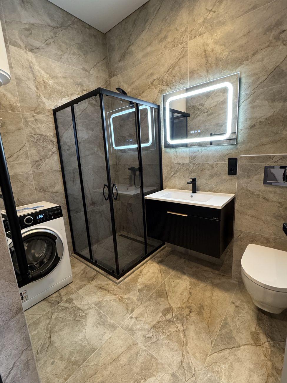 Побутова техніка: варильна панель, духовка електрична, холодильник, витяжка, посудомийна машина, пральна машина в санвузлі, кондиціонер;