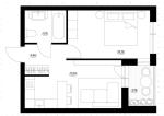 До вашої уваги пропонуємо 1-кімнатну квартиру площею 42,90 м.кв. на 3-му пверсі: