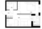 До вашої уваги пропонуємо 1-кімнатну квартиру площею 42,90 м.кв. на 4-му поверсі: