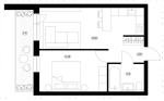 До вашої уваги пропонуємо 1-кімнатну квартиру площею 46,80 м.кв. на 5-му поверсі: