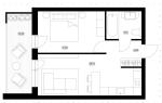 До вашої уваги пропонуємо 1-кімнатну квартиру площею 47,74 м.кв. на 5-му поверсі: