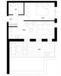 До вашої уваги пропонуємо 1-кімнатну квартиру площею 55,90 м.кв. на 7-му поверсі: