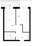 До вашої уваги пропонуємо 1кімнатну квартиру площею 46,28 м.кв. на 2-му поверсі: