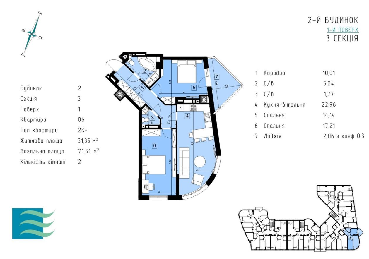Продається квартира площею 71.51 м2 розташована на 1 поверсі. Світла, простора, з панорамними вікнами та чудовим краєвидом.