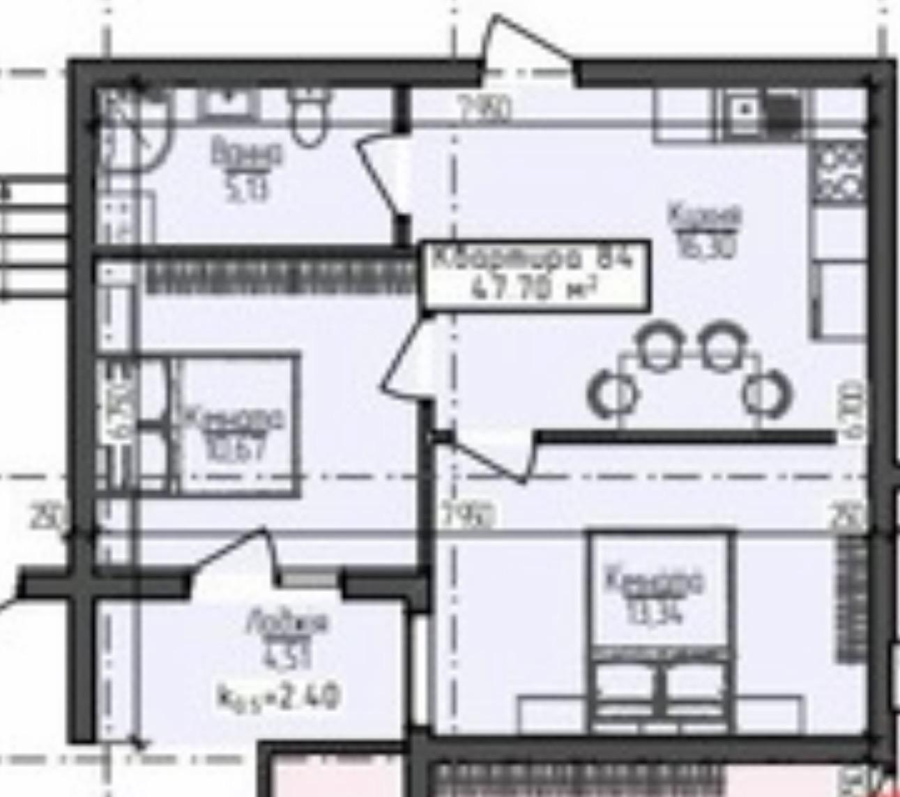 • Площа: 47,7 м²