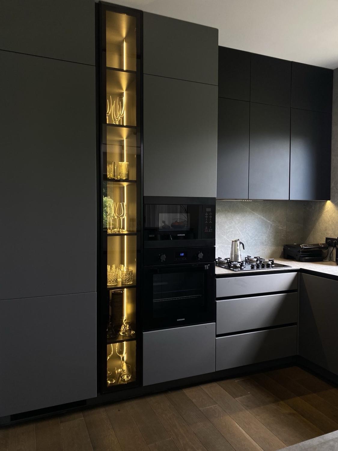 • вмонтована техніка Samsung (холодильник, духова, мікрохвильова, посудомийна, витяжка, плита)