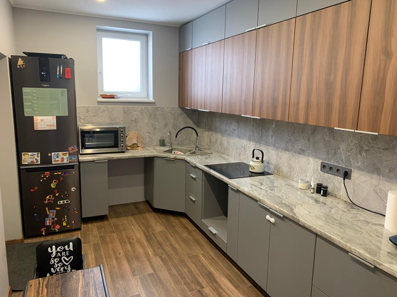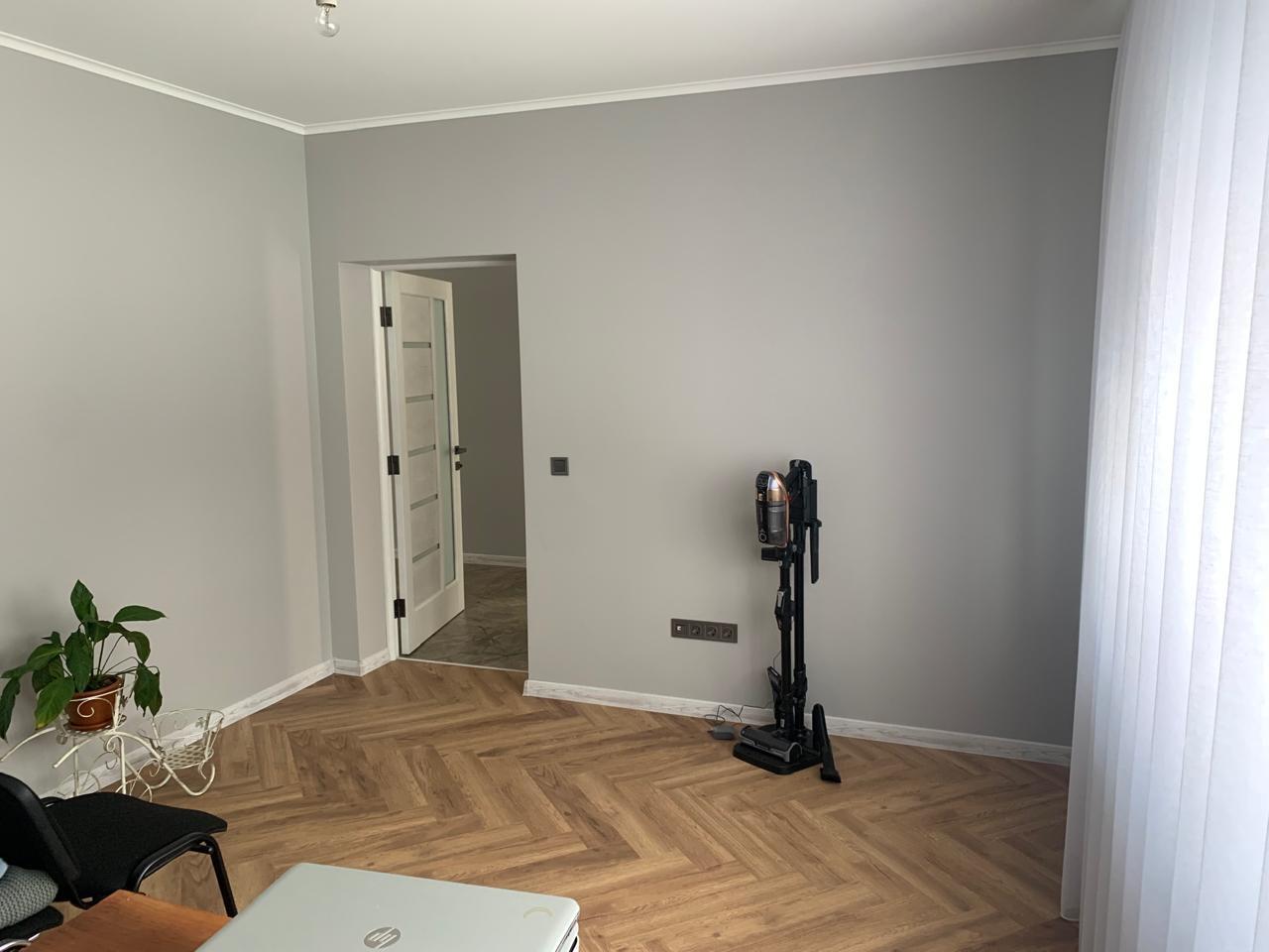 Підлога: ламінат, плитка на кухні, плитка у ванній;